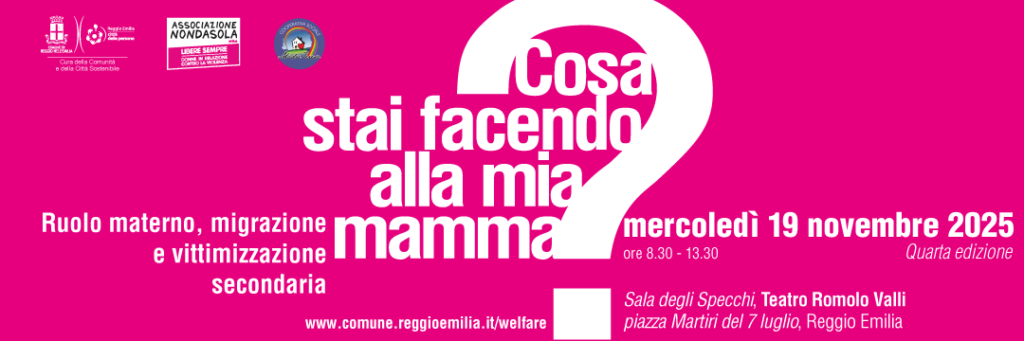 Mercoledì 19 novembre 2025 presso la sala degli specchi del Teatro Valli, il Comune di Reggio Emilia organizza – in collaborazione con l’Associazione Nondasola e la Cooperativa Madre Teresa -la quarta edizione del convegno “Cosa stai facendo alla mia mamma?” Ruolo materno, migrazione e vittimizzazione secondaria.