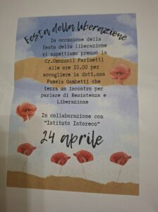 Il 24 aprile, presso la Casa di Riposo Omozzoli Parisetti, si terrà un incontro speciale, alle ore 10:00, gli ospiti avranno l’opportunità di accogliere la Dott.ssa Pamela Gambetti, che terrà un incontro per parlare della Resistenza e della Liberazione, realizzato in collaborazione con lstoreco.